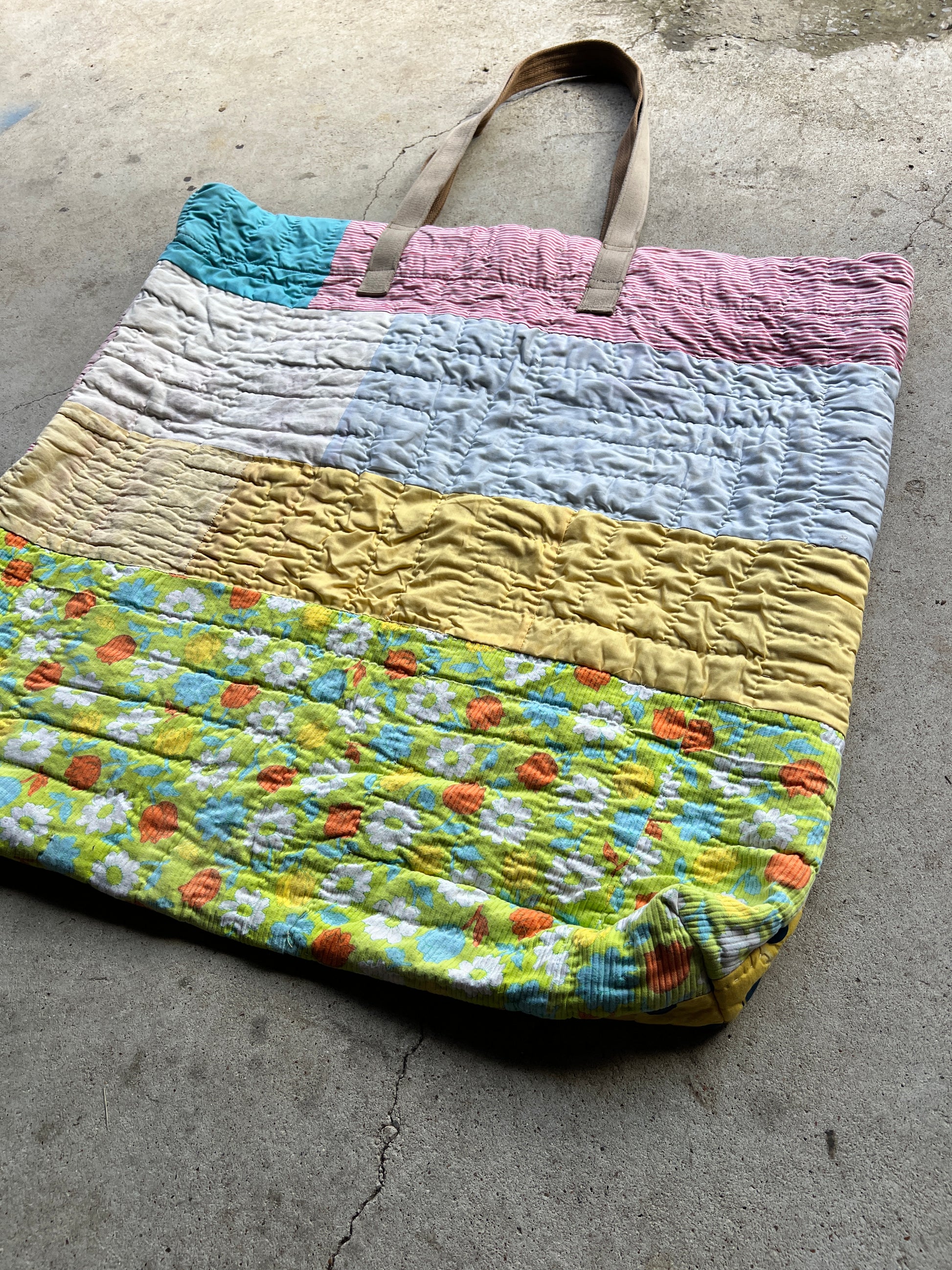 Oversized Tote Bag, made from a vintage quilt.
